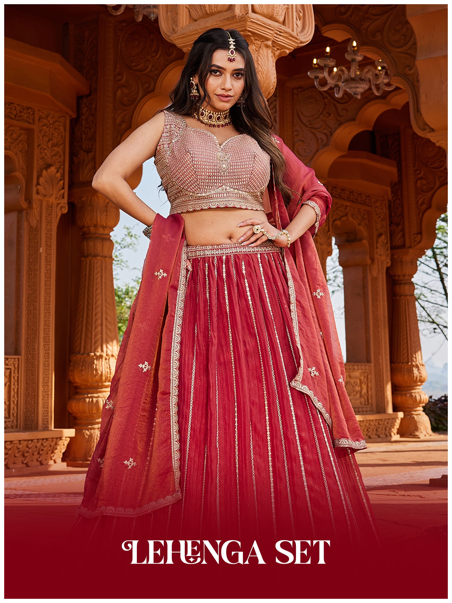 Wine Maroon Tissue Lehenga Set for Women | 3-Piece Lehenga, Blouse & Dupatta with Traditional Work | Wedding & Festive Wear