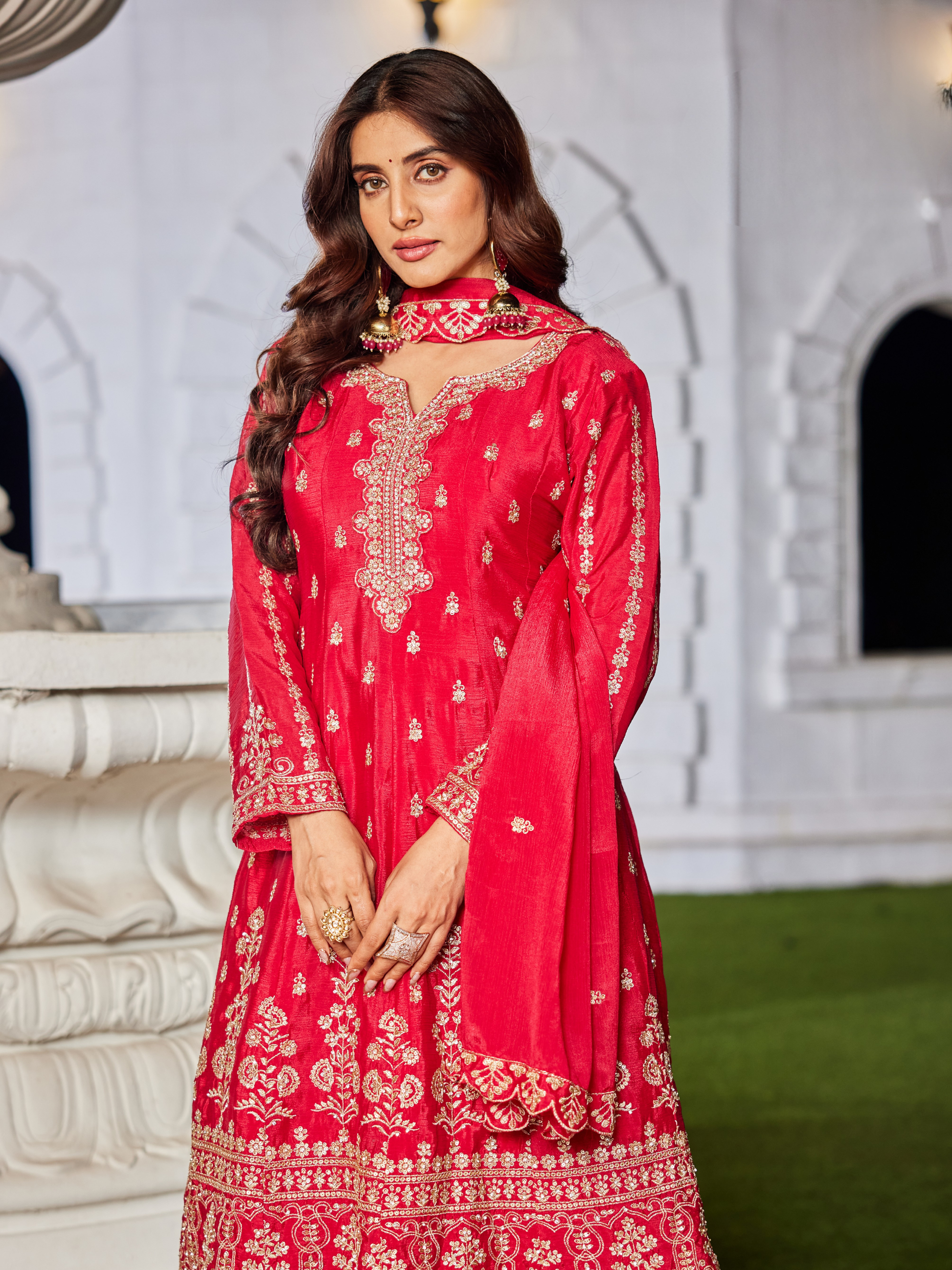 Ideal for weddings, festive celebrations, family functions, and evening occasions, this red tissue suit is designed for women who love classic colors paired with refined craftsmanship.