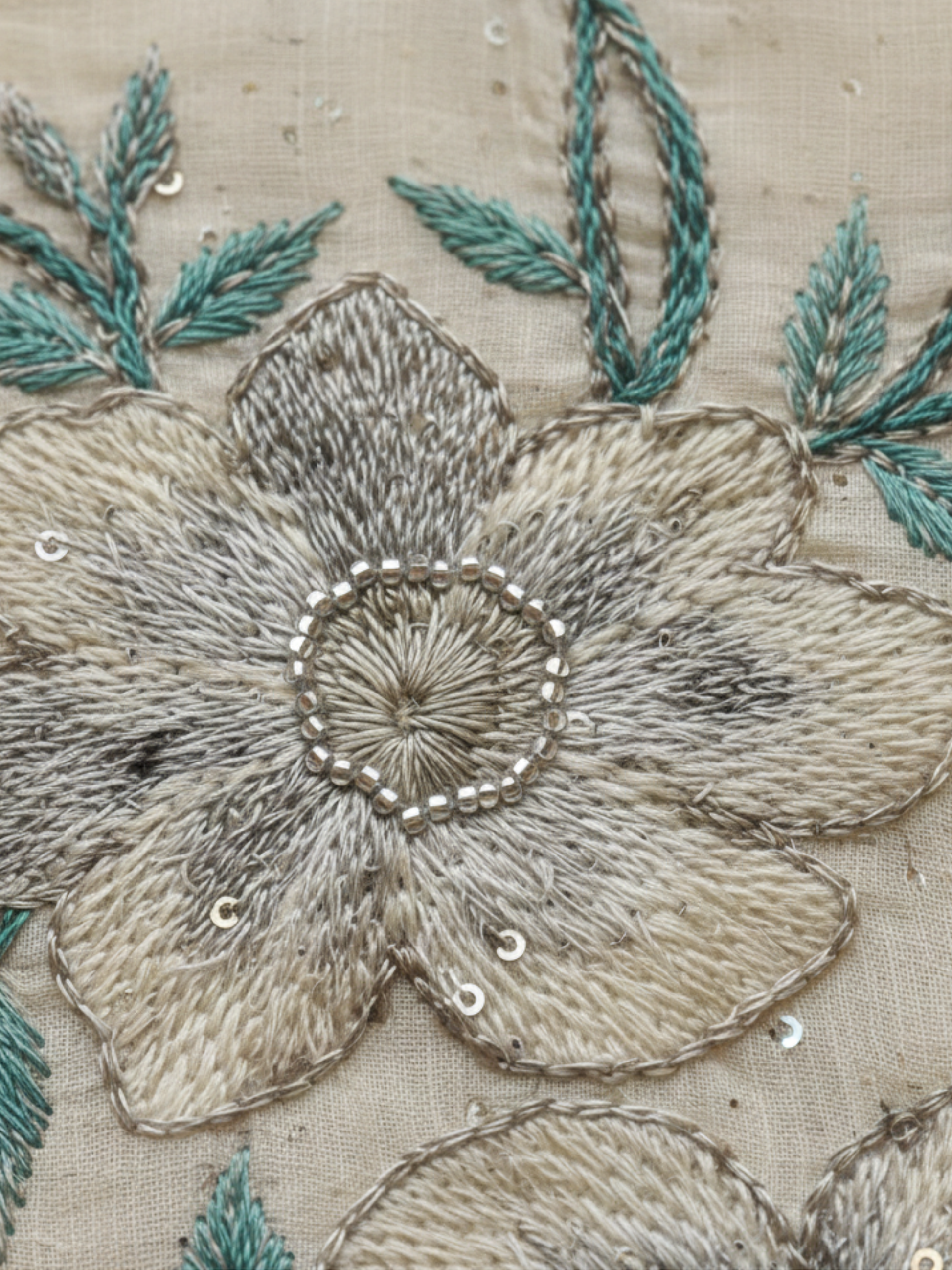 Delicate Floral Embroidery - Elegant detailing with subtle pastel tones