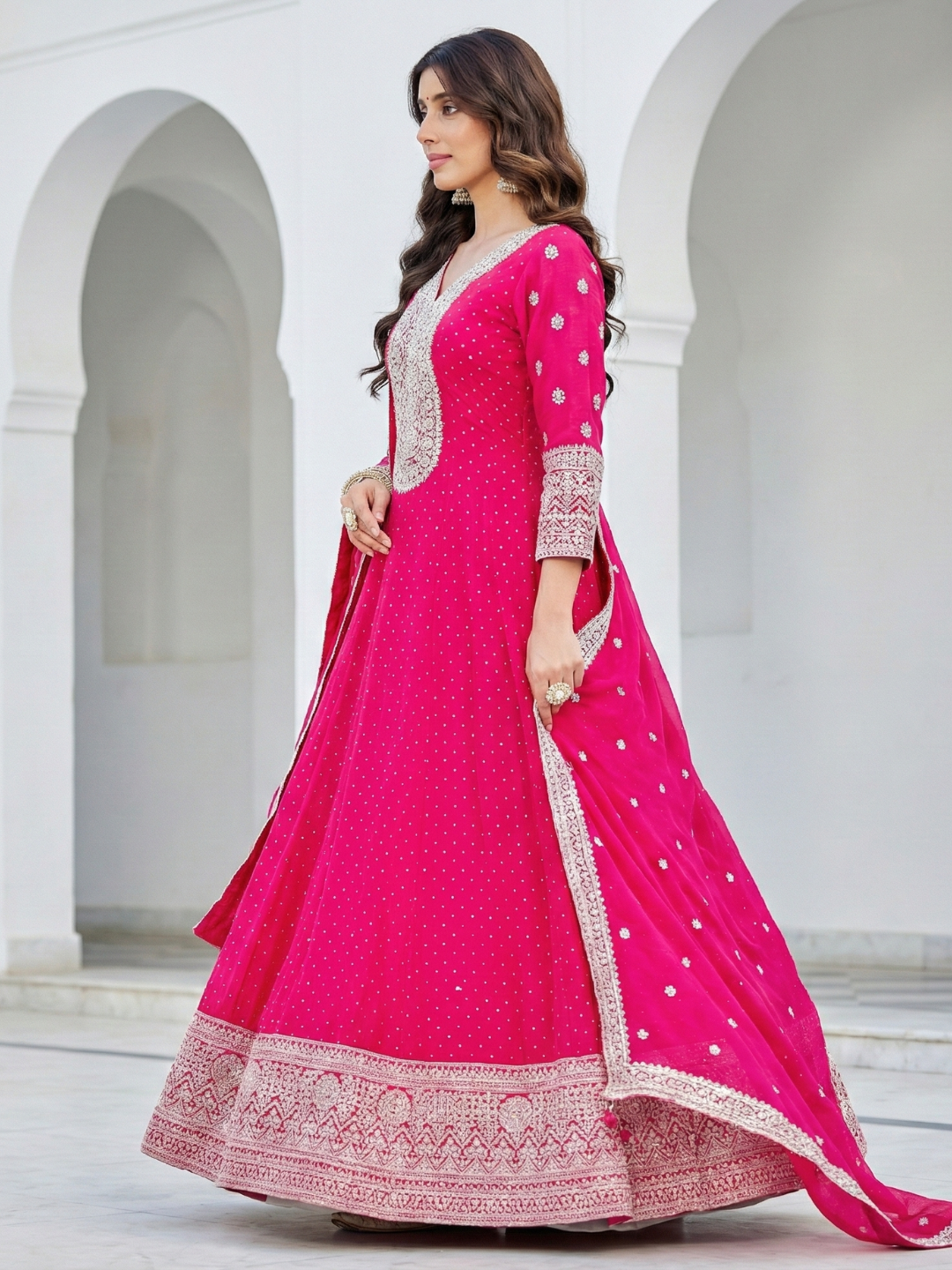 Anarkali Silhouette – Flowy, regal, and timeless design